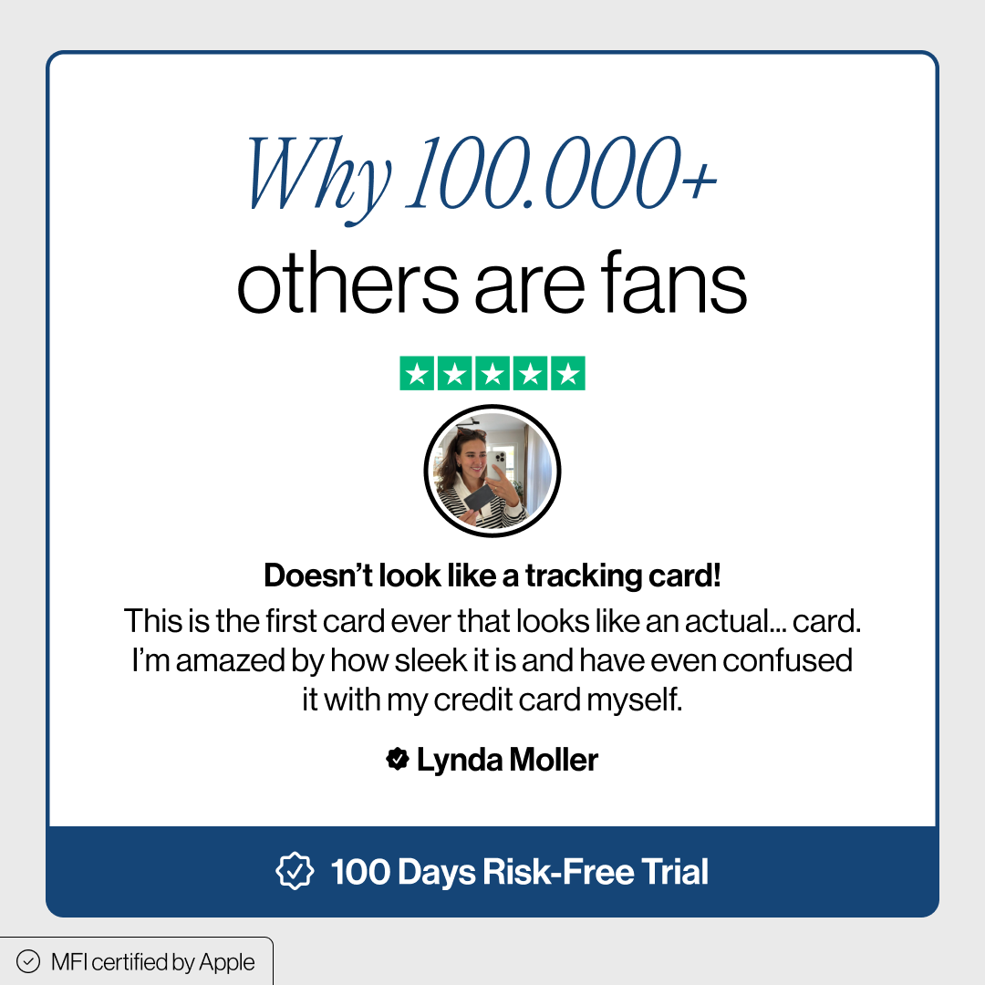 Our tracking card is scratch-resistant, waterproof, and built to last a lifetime. If anything happens, we’ll replace it with a new one or issue a full refund.