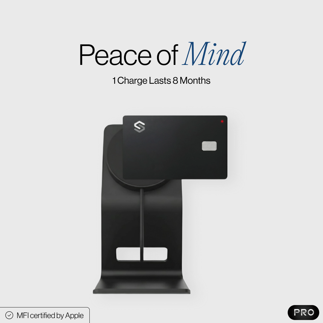Qi and MagSafe Compatible, simply charging with wireless technology. A quick 2-hour charge powers the card for up to 5 months. Designed for long-term convenience.